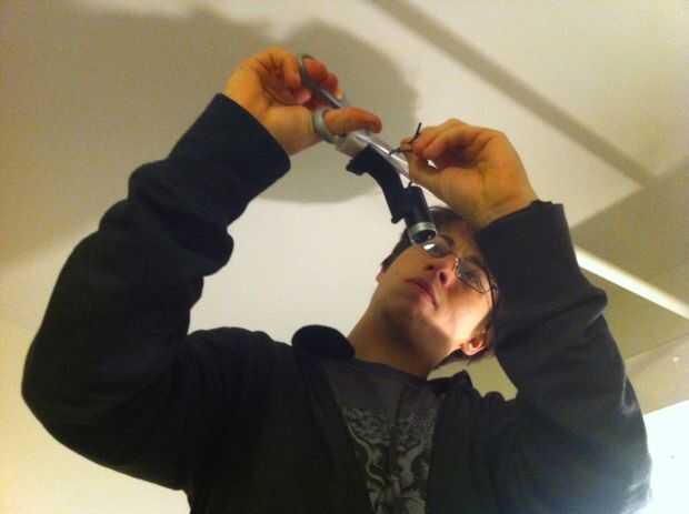 Tu webcam y fuente de luz pueden fácilmente fijarse al tubo con unas ataduras de cremallera colocado intencionalmente.