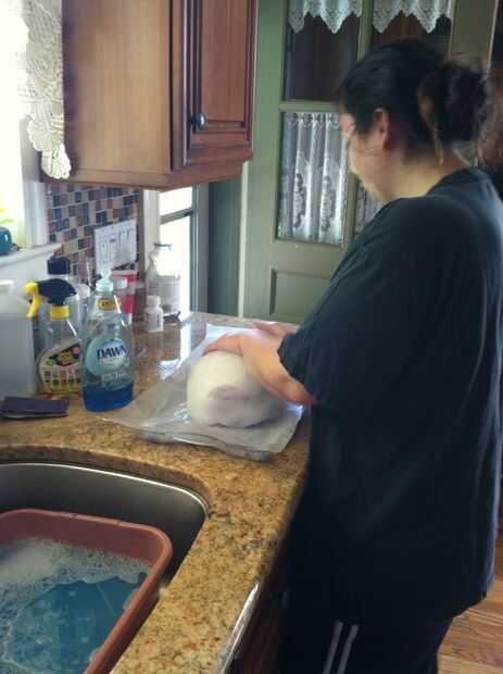 Las cabezas de la serpiente se hicieron con un molde de una cabeza de serpiente de espuma tallada para nuestro Nagini. La primera foto indica la cabeza original entre las cabezas de grandes cosas.