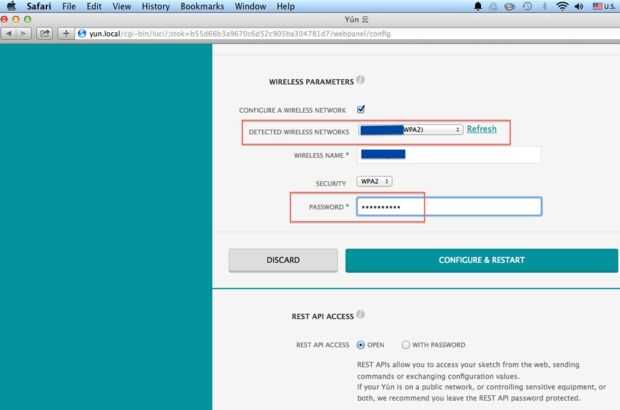 -Ahora usted puede cambiar su nombre de Arduino Yun, contraseña y el juego alrededor con otra configuración.