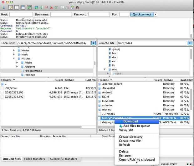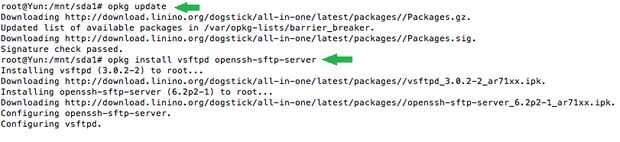Instalar servidor SFTP en su Yun utilizando los siguientes comandos
