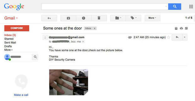 Ahora una vez que se detecta movimiento le '' ll recibir un correo electrónico como se muestra en la pantalla, con la fotografía tomada por la web cam.