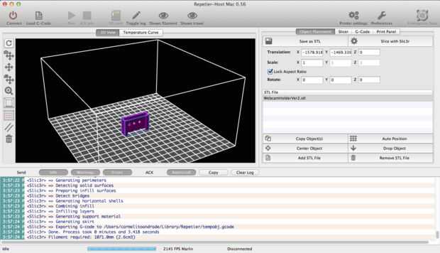 Descargar el archivo STL y carga en el software de la impresora y cortar el archivo, basado en su ajuste, la titular de la cámara web en la impresora
