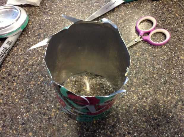 Tomar las tijeras grandes y cortar la tapa toda como arriba.
