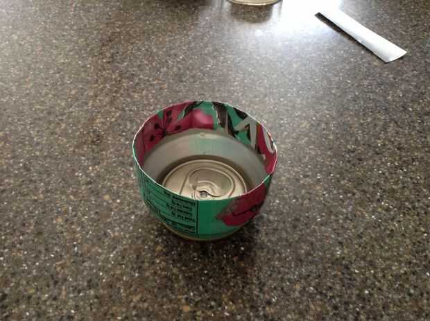 hay una taza de lata de soda. Perdón por las fotos mal pero, el trabajo muy bien. Si mi inglés es malo por favor corregir mi en los coments.Paso 1: Materiales y herramientas Son muy poco:Herramientas:1) archivo grande2) archivo pequeño3) papel de lij