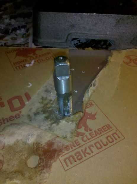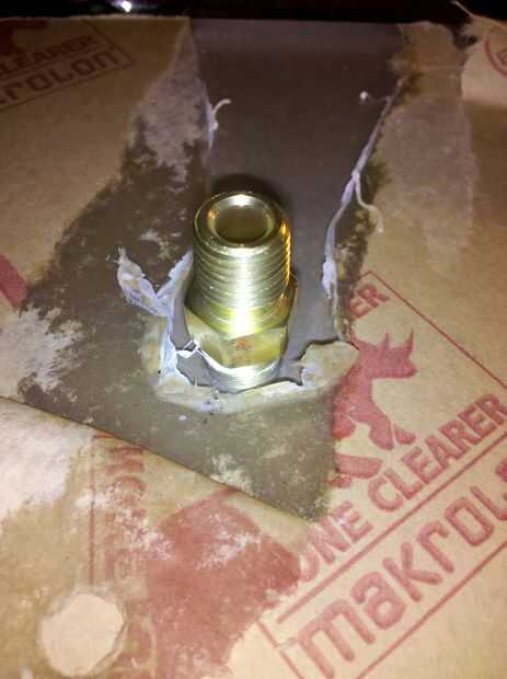 Averiguar donde desea hacer el agujero. Que probablemente no desea directamente en el centro porque el manómetro y la tubería a salir de la manera cuando usted sellar las bolsas. Según el fabricante de Lexan puede utilizar un bit de propósito general a baja velocidad si lo mantienes lubricados (Ver PDF aquí). Evitar que la broca y agujero mojado con agua jabonosa y usted va a estar bien.