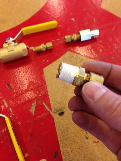 Montaje de accesorios de latón es bastante fácil, pero hay que tener cuidado. El latón es un metal muy suave y fácilmente usted puede pelar los hilos sobre apriete los racores. Pero, al mismo tiempo, si no les aprieta lo suficiente, todo se escapará. Ayuda de la cinta de teflón sello hasta las roscas en los menos, pero no es mágico. No te preocupes por esto demasiado derecho ahora. Solo haz todo en el orden correcto y podemos preocuparnos por pérdidas más adelante.