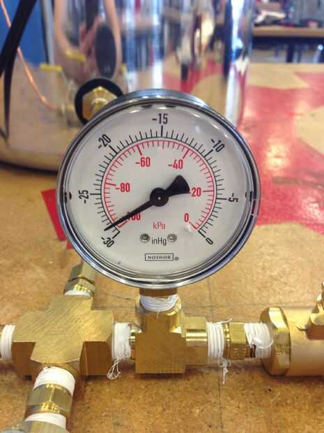En pocos segundos el medidor debe verse un grave vacío. Dentro de un minuto o dos la acción debe empezar a frenar. Finalmente la aguja se asentarán en el vacío y oirá el sonido del cambio de bomba. Si todo ha ido bien, ahora tiene una cámara de vacío de funcionamiento!