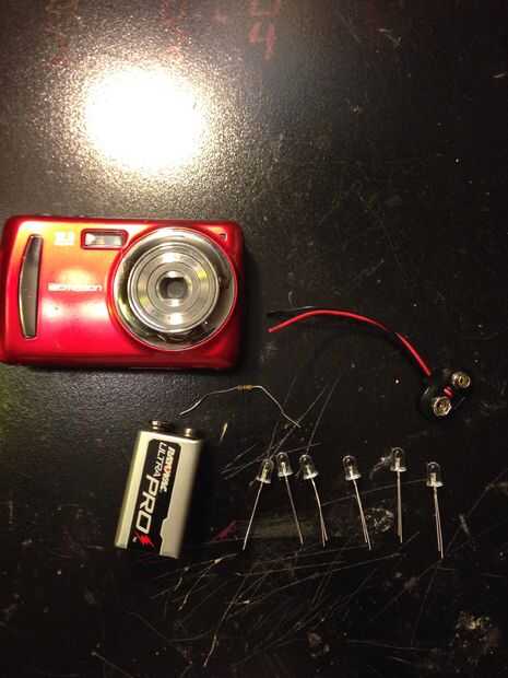 Materiales: cámara (digital, yo tengo la mía por 10 $ en mi tienda de empeño local), LED infrarrojo utiliza 6 (he encontrado mina en línea en una tienda de robótica. Su robótica local / tienda de electrónica más probable es que vende), resistencia (mi trabajo de LEDs mejor con 390 ohm, estas voluntad varía), de 9 voltios u otra batería pack, snap clip (si se usa 9 voltios), interruptor (opcional, no utilice uno). Ahora las herramientas: pistola de pegamento caliente, soldadura de hierro y soldadura, desarmadores, pinzas de nariz (opcional). Que sobre lo resume!