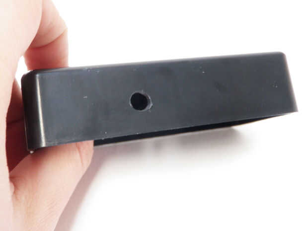 El caso del tirón en su lado más largo. Perfore un orificio de 1/4" centrado en cualquier lugar a través de esta longitud.