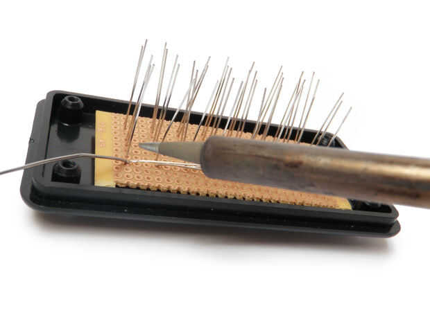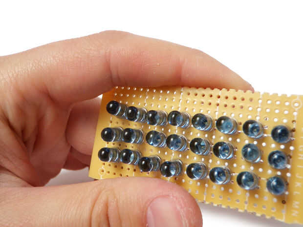 Doble hacia abajo la primera fila de LED lleva en la misma dirección y soldarlos todos juntos en una sola fila. Repetir este proceso para todas las filas consecutivas.