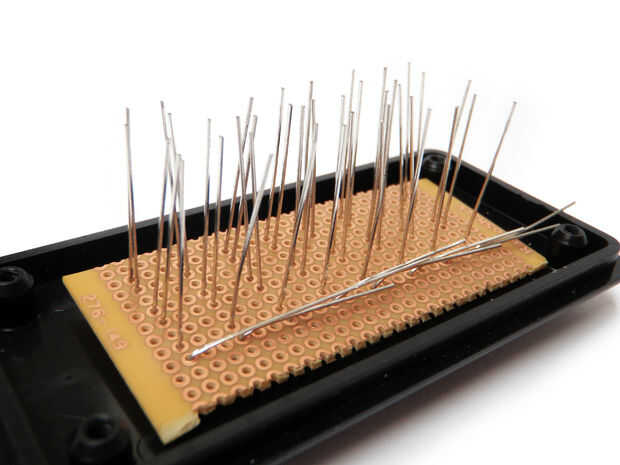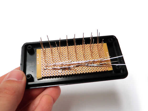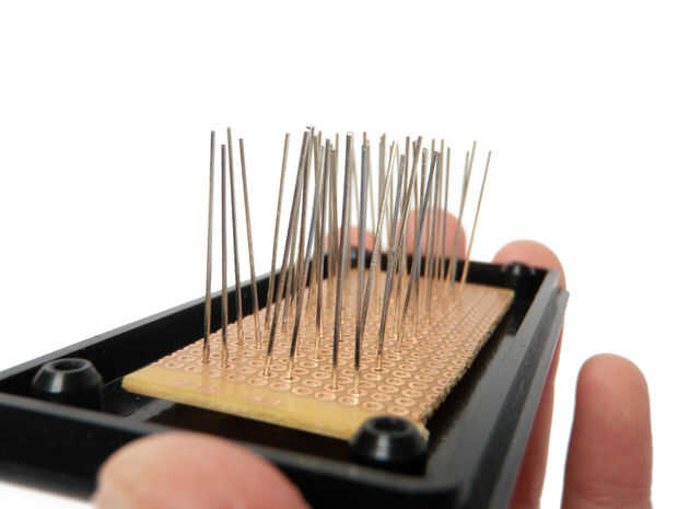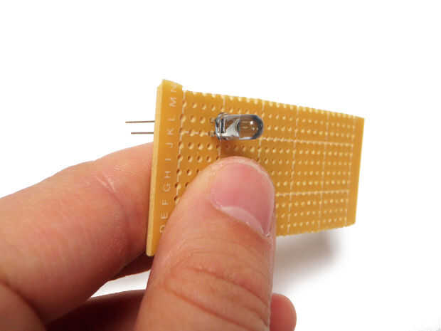 Una vez están todos colocados, insertar los LEDs en los agujeros en la tapa de adentro hacia afuera.