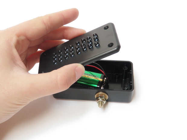 Poner la batería dentro de la caja y fijarla cerrado.