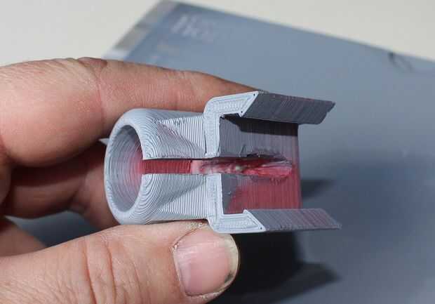 La ranura se forma sólo parcialmente en la impresión 3D. Lo acabó usando un soldador para derretir el plástico para que la ranura corrió en el interior del orificio tubular que se desliza en la cámara.