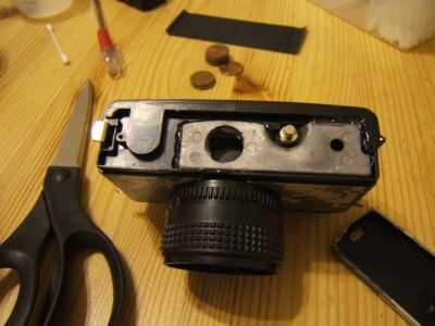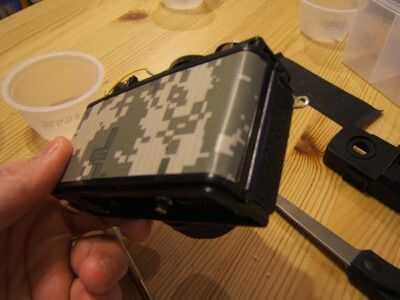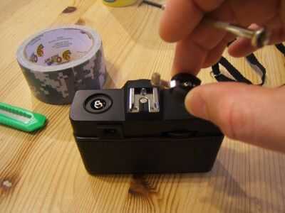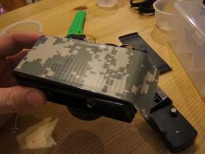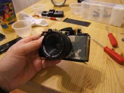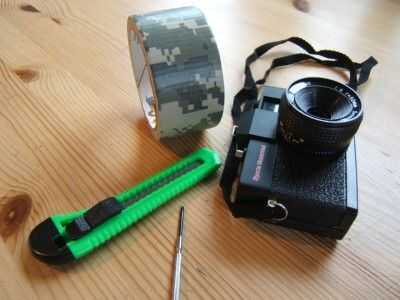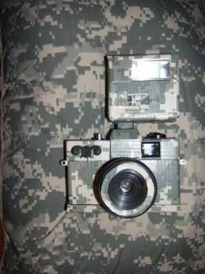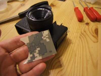 No hay truco real aquí, sólo cubrir la cámara en cinta camo. Usé una cutre cámara de promo de Sports Illustrated. No quiere preocuparse por una costosa cámara en "Die Scheiße." Añadir algunos Tri-X para esa mirada de fotógrafo de guerra y dispara.