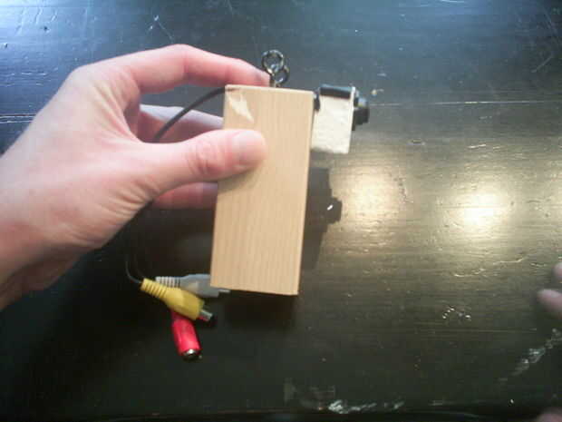 Ahora necesitamos conectar la cámara al bloque de madera y hacer todo el cableado por lo que es un buen paquete compacto y equilibrado.