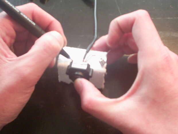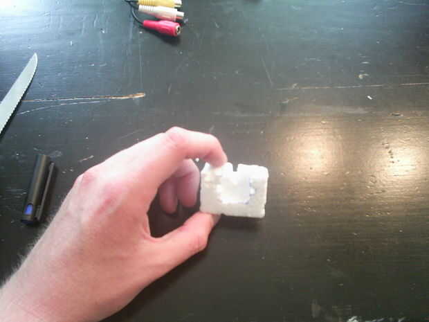 Hacer unos cortes en la espuma para hacer espacio para los cables. He hecho un pequeño agujero en la espuma para el micrófono.