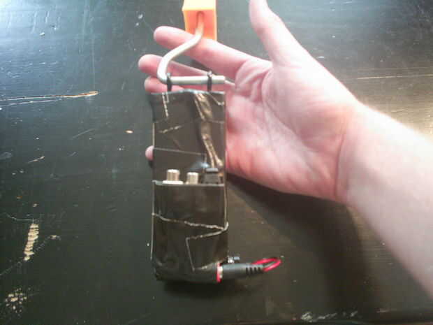 Ya que tengo la batería para encender la cámara he desidir para poner esto en el bloque también. Se trata en la parte inferior del bloque debido a su peso. también utilizar la gaffertape en este caso.
