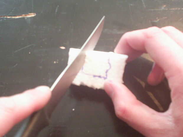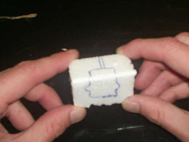 Simplemente colocar la cámara frente a la espuma de poliestireno y dibujar con el lápiz los contornos de la cámara a la espuma de poliestireno. Luego usamos el cuchillo para cortar la forma de la cámara de la espuma.