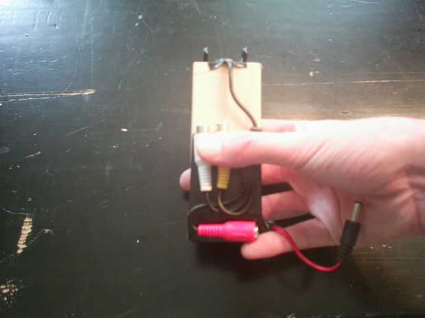 Ahora sólo asegúrese de que todo está en su lugar, usted tiene su salida de vídeo y su salida de audio, y en la parte inferior tienes tu entrada de energía, entonces grábelo todo junto hasta que todo está bien apretado.