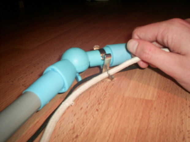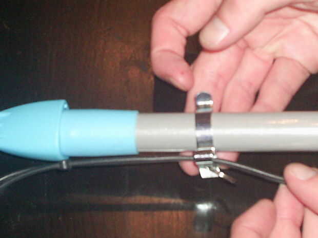 Luego poner el cable de audio/video cuales toda la longitud del poste. Ahora toma los soportes y colocar el poste y el cable a unos de otros. un soporte para cada parte actualizable del poste debe ser suficiente.