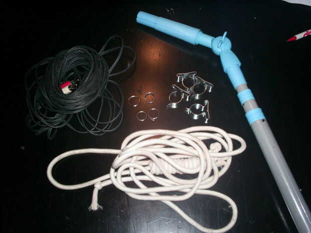 Ahora necesitarás el cable de audio/video, el poste y el alambre.