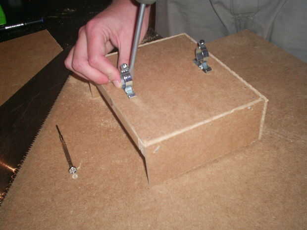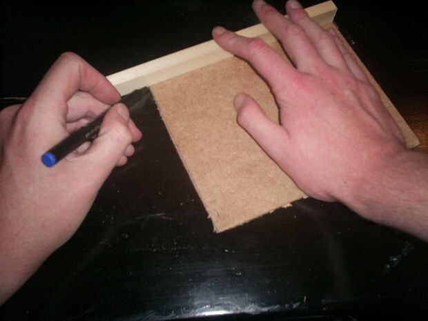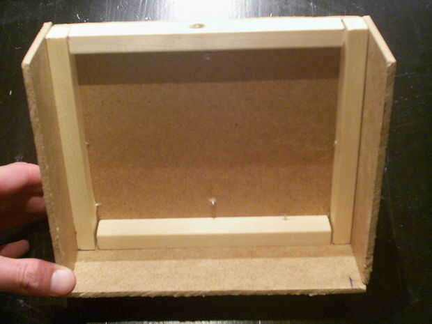 Ahora vio 3 piezas de madera prensada para hacer 3 paredes para el titular. 1 izquierda, 1 derecha y 1 en la parte inferior y uñas al lado de las vigas de madera.