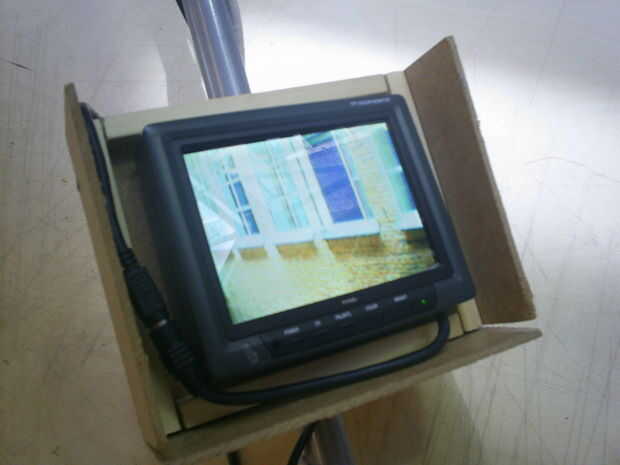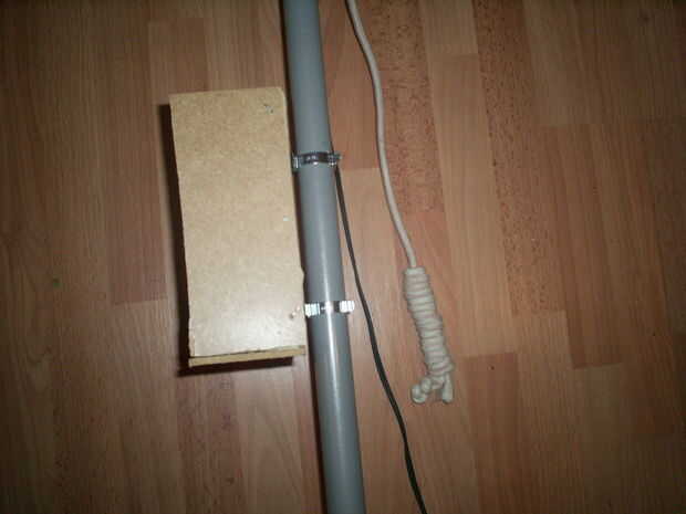 Simplemente tome el extremo superior del alambre y cinta adhesiva en la parte inferior del bloque con la cámara en él. Asegúrese de que el cable funciona a través de todos los anillos poco y tiene la libertad de moverse con la cámara.