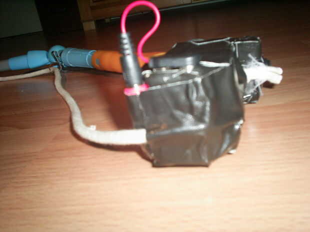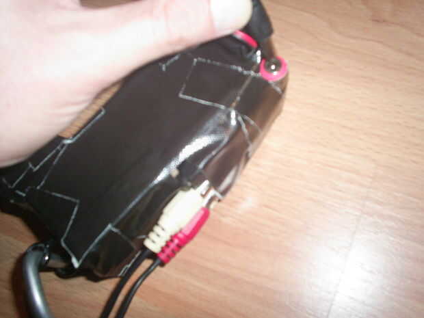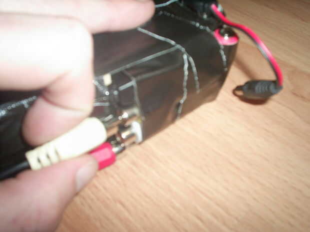 Ahora conectar la batería a la entrada de alimentación y enchufe el cable de audio / video.