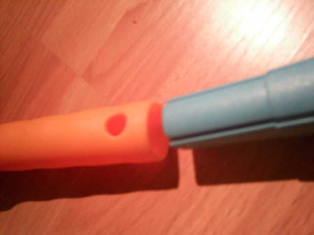 Primero vamos a tomar el pedazo de cámara y colóquelo en la cabeza de la vara del telescopio.