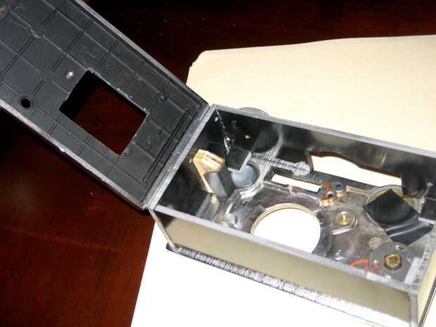 Una vez la cámara digital fue colocada con precisión, cuidadosamente medido donde un recorte necesario para estar en la parte posterior de la cámara pude ver la pantalla de la cámara digital... Corté por esta ventana usando una herramienta giratoria con un disco abrasivo.