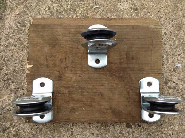 Para este paso necesita 3 ruedas, 6 tornillos y 1 tablón (cortado a la medida).