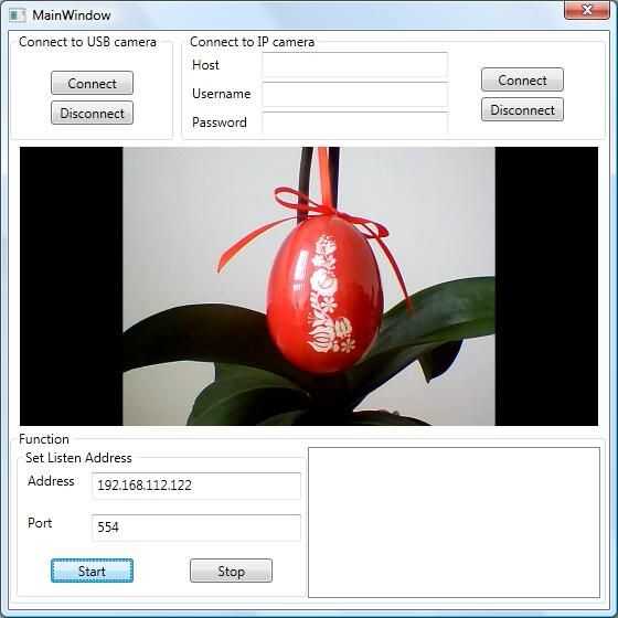 Después de haber implementado el programa con éxito, vamos a ejecutar la aplicación. Compruebe cómo funciona el software mediante la especificación de la dirección de escucha: Introduzca su dirección IP y el número de puerto de escucha. Por último, haga clic en el botón Inicio para empezar a RTSP streaming.