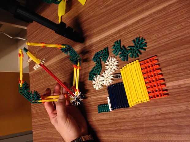En la imagen pueden ver las K'NEX las piezas necesarias para la primera hoja. Conecte las piezas como se puede ver en las fotos. Necesita para la construcción de 3 hojas.