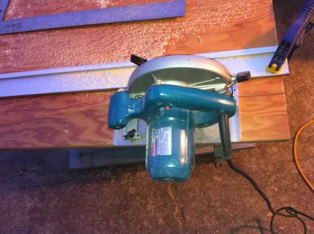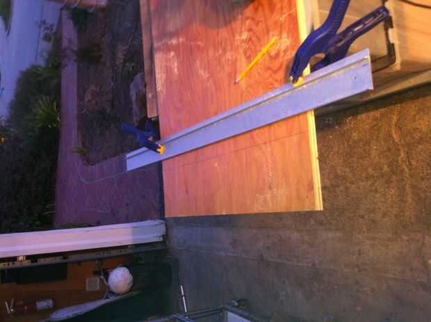 Utilicé a una guía de aluminio para cortar la madera contrachapada. Establecer trasero 1.5" utilizando el extremo pequeño del cuadrado de un para los marcos. Seguimiento con una sierra de habilidad.
