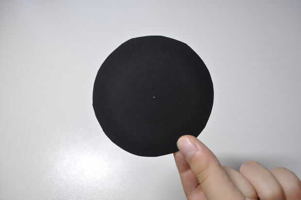 2. cortar una pieza redonda para cubrir uno de los extremos del tubo, este es el lado donde meter un agujero minúsculo pequeñito (el agujero) para dejar el paso ligero. Si se utiliza un compás para dibujar el círculo, a ya cuentan con un centro marcado para usted, sólo asoman justo a través de él. Voy a explicar más sobre esto al final.