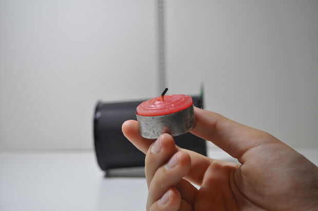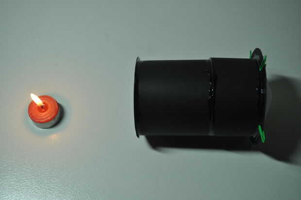 Si su configuración se parece a uno de los últimos 4 cuadros, entonces usted está listo. En las últimas 3 fotos, he añadido una regla, de esta manera, más o menos puedo medir la distancia entre la llama y el agujero de alfiler, así demostrando esta teoría sobre que estábamos aprendiendo: