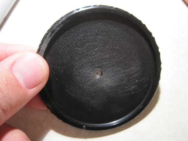 Con un taladro, perfore un agujero en el centro de la tapa.