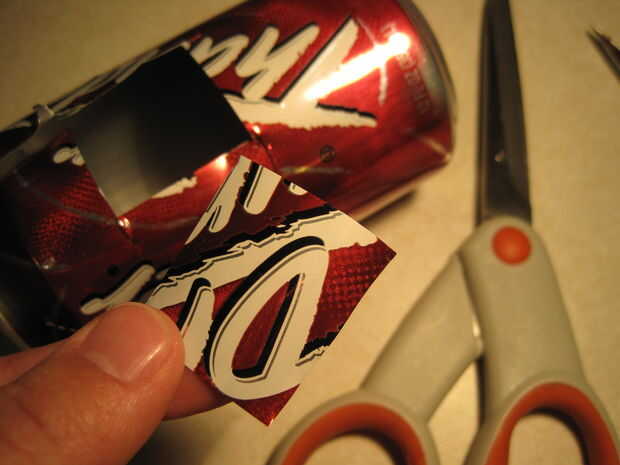 Corte un cuadrado pequeño hacia fuera de la soda puede. Asegúrese de lavar todos viscosidad de la Plaza de lata.