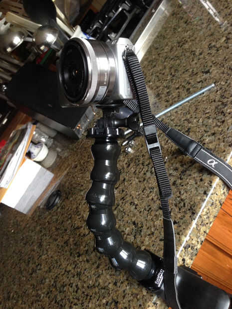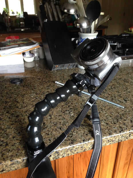 Esto sobre la montura de hombro es perfecta para una GoPro y un viejo sin usar Camelbak u otros pack de hidratación. Estos elementos no utilizados se convirtió en una plataforma muy útil... con almacenamiento!! También mantiene mi cabeza en la foto p
