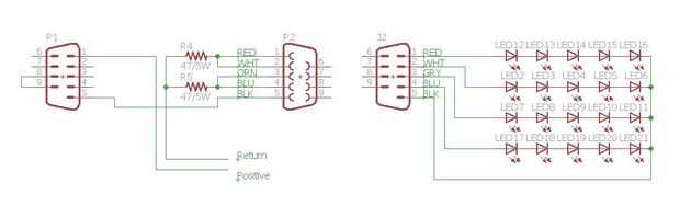 Proyector de LED infrarrojo fue bastante simple. He encontrado algunos barato de IR LED de alta potencia en EBAY SPEC en 700 pico mA. He creado 4 secuencias de 5 leds conectados en serie (ver esquema). He conectado las dos cadenas en paralelo y había conectado a 47 ohmios, resistencia de 5W a cada cadena. He encontrado un enchufe externo en fuente de alimentación que proporciona unos 17 VDC. Seleccioné una las resistencias para limitar la corriente para no quemar el LED. Usted tendrá que averiguar las especificaciones en su LED, cómo muchos usted quieren, qué fuente usar para el coche LED actual y calcular las resistencias limitantes. No hay manera que la Pi puede conducir éstos por sí mismo. El escudo de la cámara utiliza un relé por lo que no importa lo que utilizas. Sólo asegúrese de que no conduce más corriente que la que puede manejar el relé o el cableado que se utiliza.