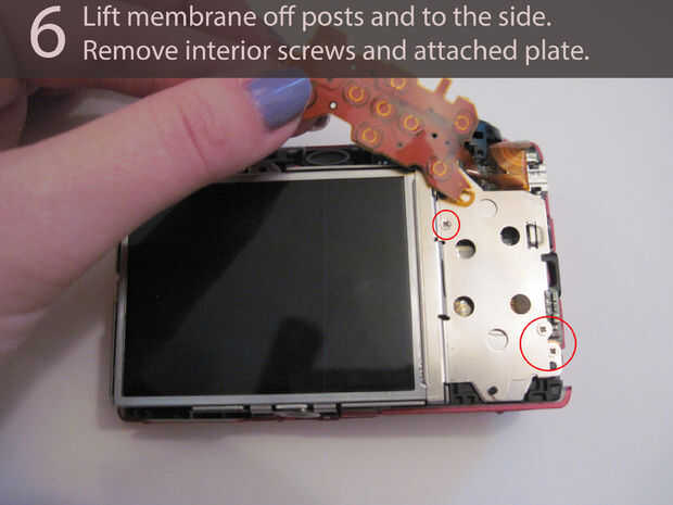 Utilice un destornillador para levantar un poco la membrana de los puestos a la vez. Desgarro de la membrana o su conexión será inutilizar botones de cámara. Algunas cámaras requieren desconectar el cable de la membrana para moverlo. Si este es el caso, tire suavemente el cable directamente desde el puerto. Puede ser insertado otra vez al volver a armarlo.