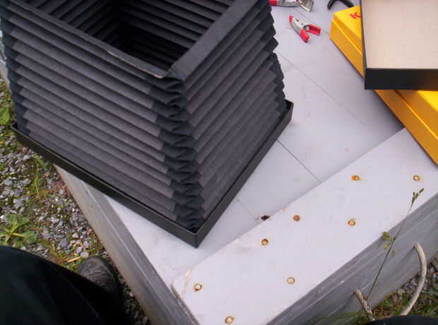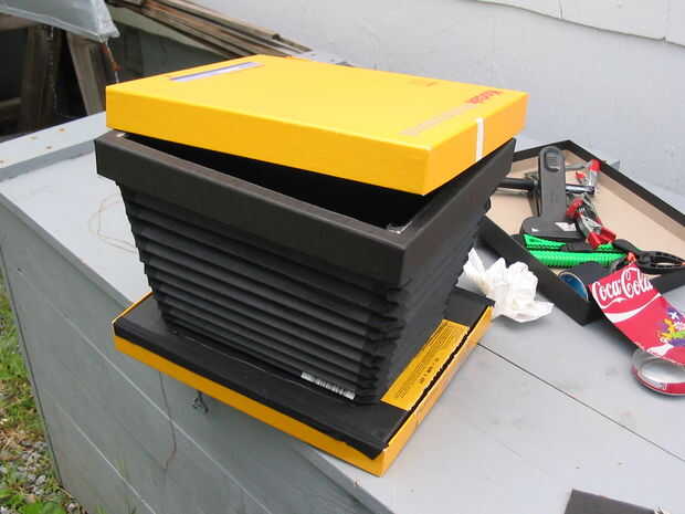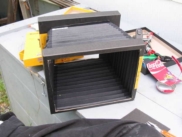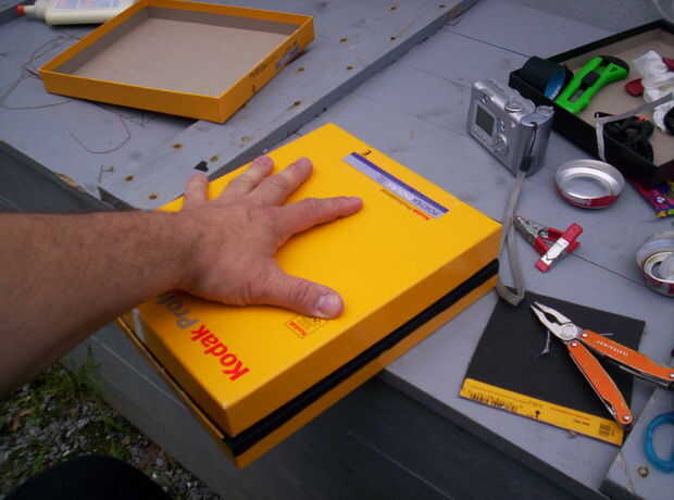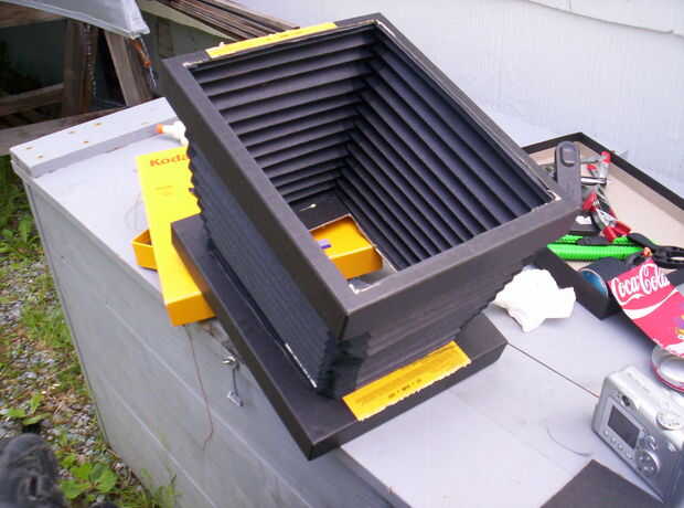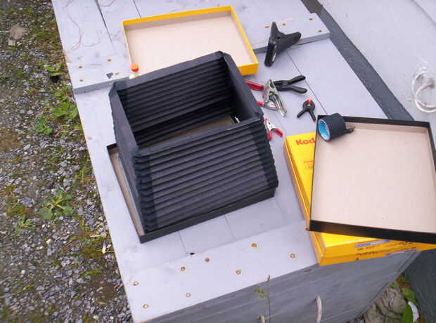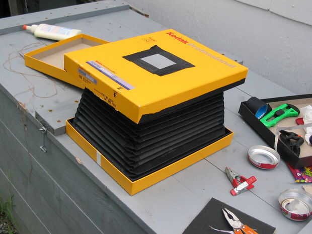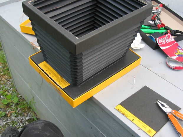 poner un montón de pegamento bien esparcido en el lugar superior del fuelle la caja en la parte superior y suavemente presione hacia abajo para comprimir los fuelles y y alinee las dos cajas con los demás.
