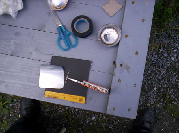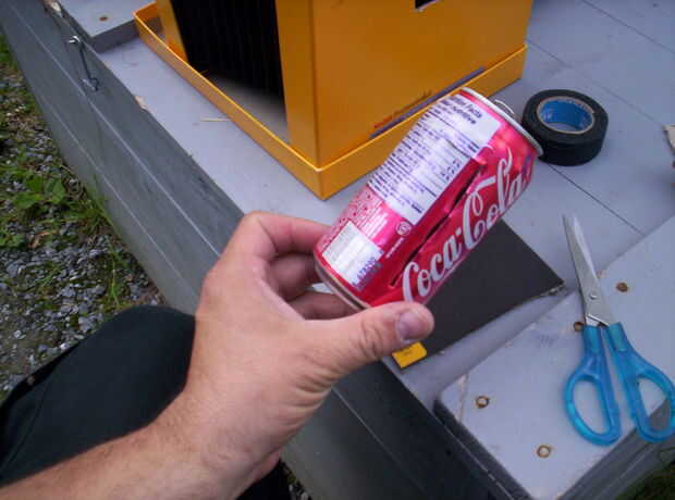 cuidadosamente corte el puede aparte y corte una pulgada 2 cuadrado hoja de él {sangre zona para menos útil entre nosotros guantes}