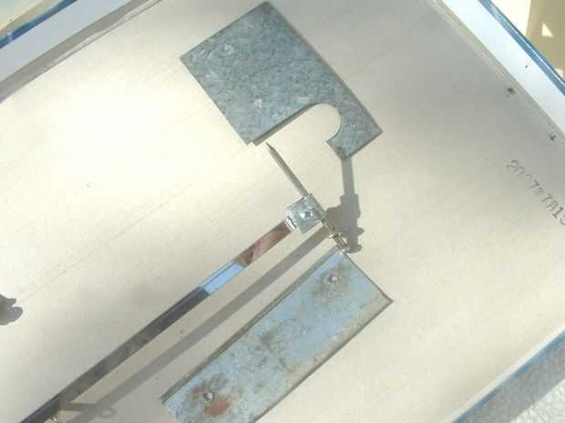 a continuación, en la imagen, puede ver los otros metales que utilizaba. Corte parte de la una sola pieza para hacer la bisagra. Fue en la barra larga bronce que encontré. Usé un clavo de la bisagra. La barra de que he utilizado como una palanca para empujar el botón para tomar las fotos.