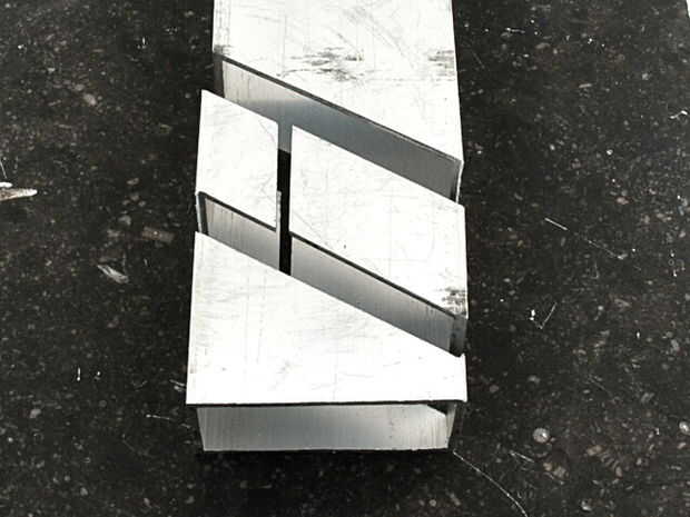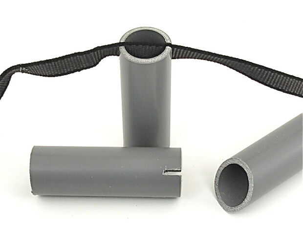 Corte las ranuras en el extremo de ambos tubos. La anchura de la ranura debe corresponder con las dimensiones de su cuello. Cortar un extremo de la tubería de PVC más de 30 grados.