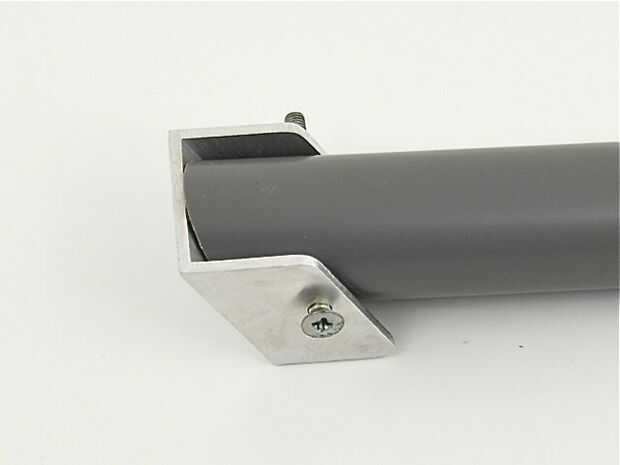 Coloque la bisagra en la parte superior del tubo de PVC y a través del agujero del taladro. La bisagra tiene que descansar sobre la tubería.