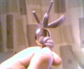un nudo pierde alrededor de un anillo de llavero, tensión cuidadosamente el nudo mientras que asegurándose de que la cámara cuelga horizontalmente.