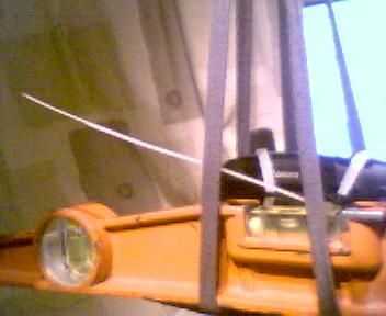 a través de la cuerda el mismo agujero del hilo de rosca y en la misma dirección que los amarres de cable.