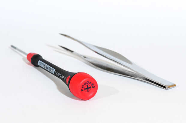 Para abrir la cámara necesita solamente una herramienta, un destornillador Philips 00. En caso de que tuve una pequeña pinza precisa conmigo.