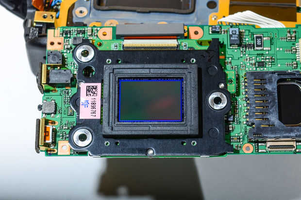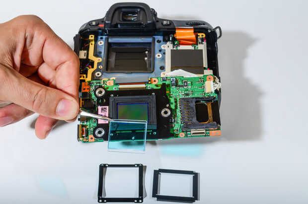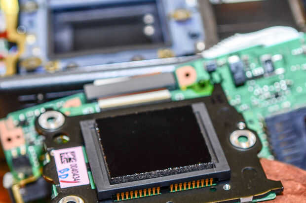 El filtro IR de reemplazo debe cortarse a un tamaño determinado. He seguido las ranuras empotradas en la superficie de goma alrededor del sensor. Según él, el nuevo tamaño de cristal del filtro es 29,5 mm x 25 mm. El vidrio va bajo el marco de cristal, pero sólo en la parte superior e inferior.